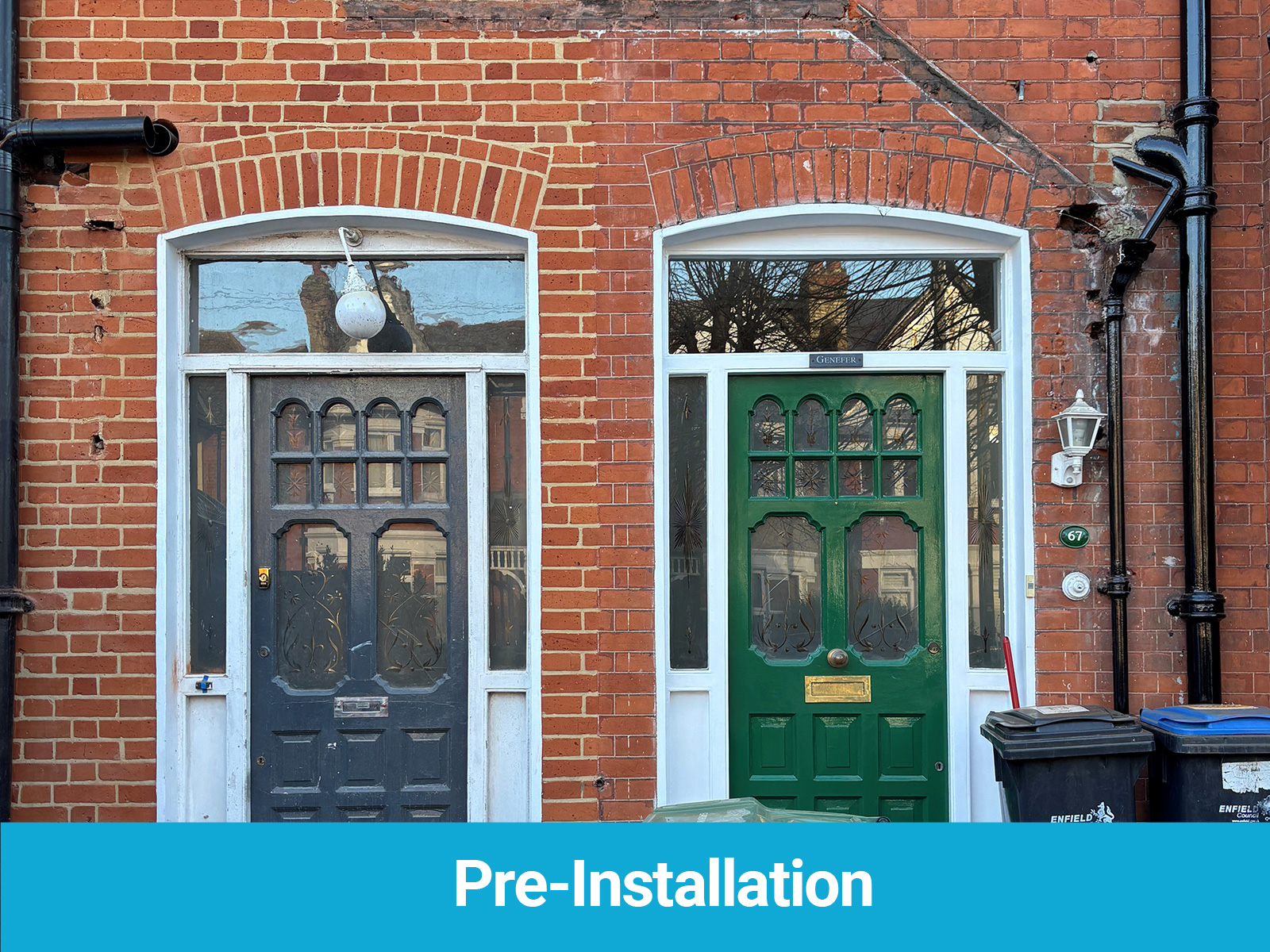 The pictures tell their own story of how the relatively simple addition of a double front door canopy, built faithfully to match the style of the period, can transform the look of two adjoining houses. And both clients were delighted with the outcome.