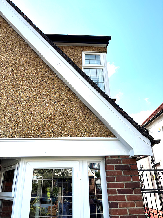 After Summit went to work, where John’s original uPVC bargeboards were fitted there were now maintenance-free stylish replacements, complete with ornamental architrave. Instead of the flaking black paintwork, there was textured black uPVC, so close to the original, you’d hardly spot the difference.